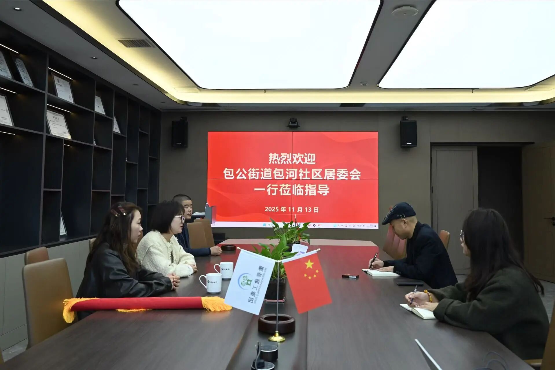 11月13日下午,合肥市包河区包公街道包河社区居民委员会工作人员带着精心制作的锦旗,亲临徽春建工集团有限公司,向徽春建工集团有限公司及中启鸿腾建设集团有限公司在社区公益活动中的积极参与致以诚挚谢意。以此诠释政企同心的深厚情谊。 徽春建工集团有限公司行政副总音邦乾、党支部书记周丽琴、项目经理崔三杨热情接待了社区一行,在交流中,音邦乾副总详细介绍了徽春建工集团的发展历程、核心业务及企业文化理念,重点阐述了企业“源于社会、反哺社会”的公益宗旨。他表示,参与社区共建、投身敬老助困公益事业