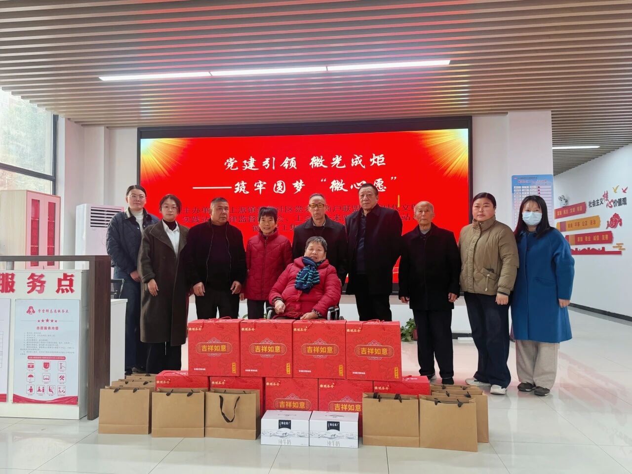 2025年12月5日上午,上派镇紫蓬社区党委牵头,联合徽春建工集团有限公司党支部、社区商户联盟、新时代文明实践站、关工委等多方力量组成慰问组,带着精心准备的慰问物资和真挚关怀,深入紫蓬社区困难家庭开展“微心愿”圆梦慰问活动。此次慰问活动不仅是紫蓬社区党委深化“党建+民生服务”模式的生动实践,更是对基层党组织 “服务群众、凝聚人心” 核心职责的有力践行。慰问人员不仅送上物资,还细心叮嘱老人们注意冬季用火用电安全,并表示社区将持续关注他们的需求,及时提供力所能及的帮助。徽春建工集团有限公司党支部周丽琴书记表示