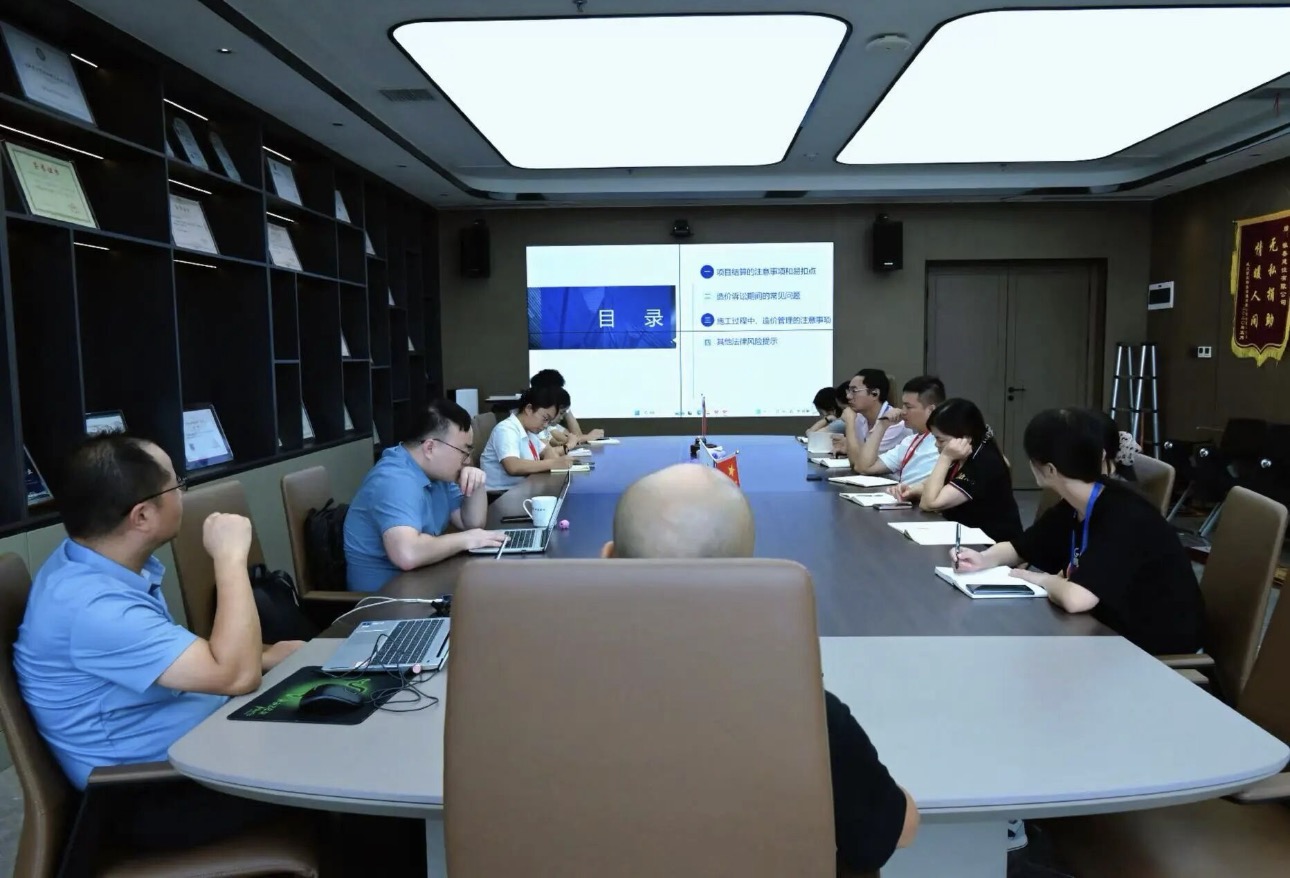 2025 年 9 月 28 日下午 1 点,徽春建工集团有限公司在公司会议室举行建筑法律法规培训及工作对接会。本次会议特别邀请行业资深法律专家授课,集团各部门负责人、项目管理骨干及相关业务人员参会,旨在通过系统培训与精准对接,强化全员法律合规意识,破解实操中的法规应用难题,为集团工程建设业务的规范化推进筑牢法治根基。会上,专家以建筑行业核心法律法规为框架,结合最新政策动态与典型案例展开深度讲解。培训内容紧扣集团业务实际,既涵盖《建筑法》《合同法》《安全生产法》等基础法律的核心条款解读,又聚焦工程招投标、施