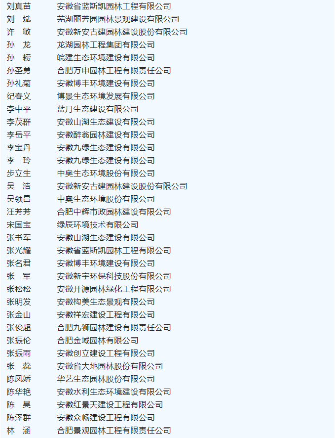转发安徽省风景园林行业协会 2022年安徽省园林绿化行业评比表彰名单公布