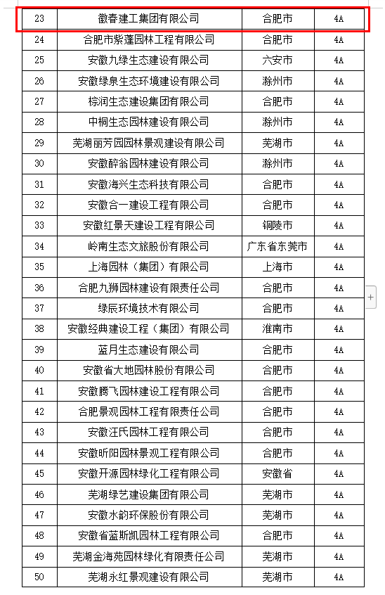 近日,安徽省住房和城乡建设厅公示了2022年度安徽省园林绿化施工企业效能管理及信用评价结果。我单位通过申报、审查、省级复审校核等严格程序,获评2022年度安徽省园林绿化施工企业效能管理及信用评价“4A级企业”!