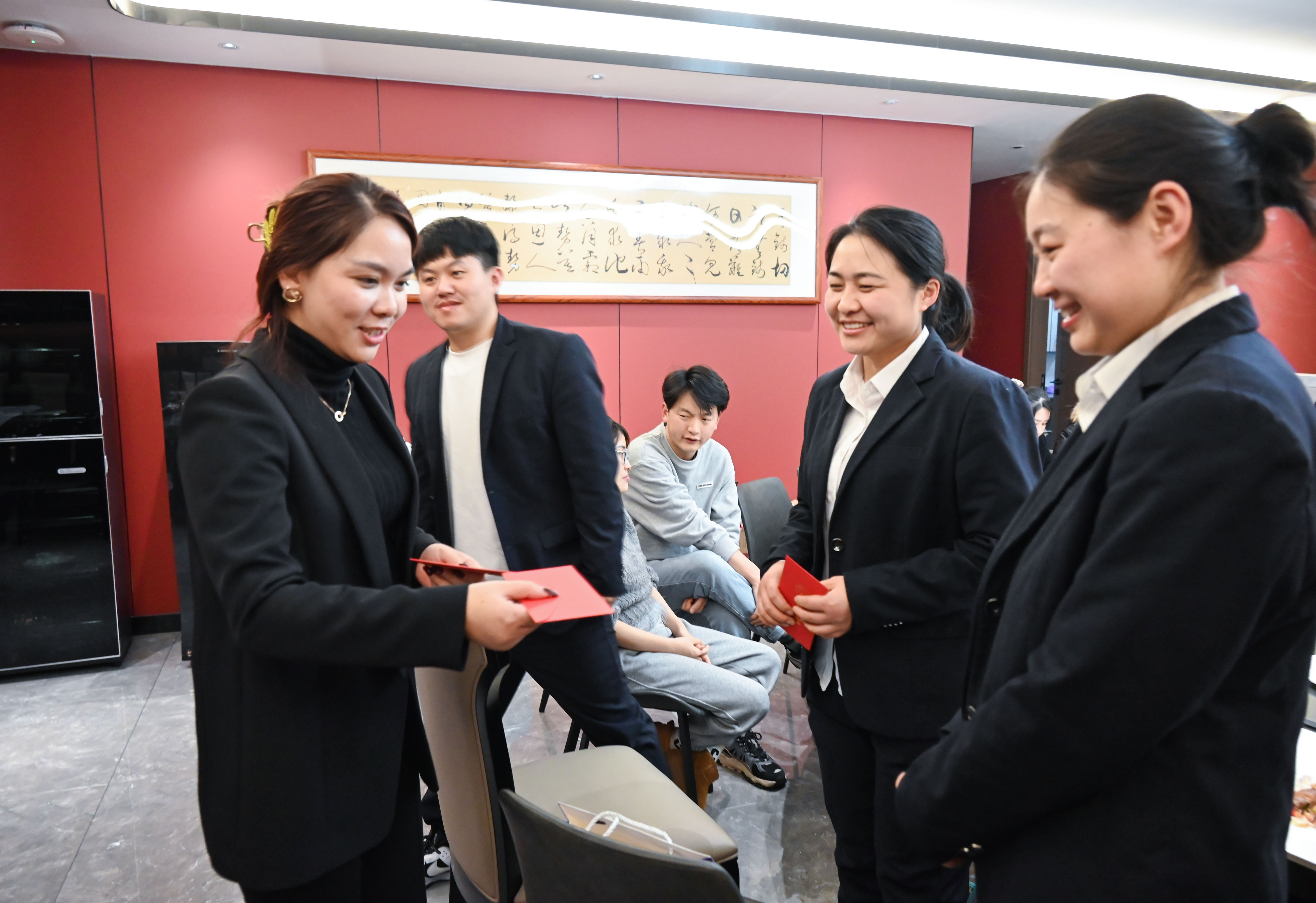 会后,集团工会安排了小年晚宴,晚宴在轻松愉快的氛围中举行。回忆过往,畅谈未来,美味佳肴、把酒言欢。CEO程总为所有员工送上新年红包,祝大家在新的一年里身体健康,事业发达,家庭幸福,新年快乐!