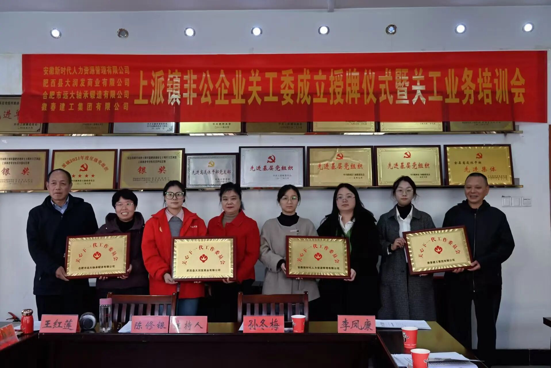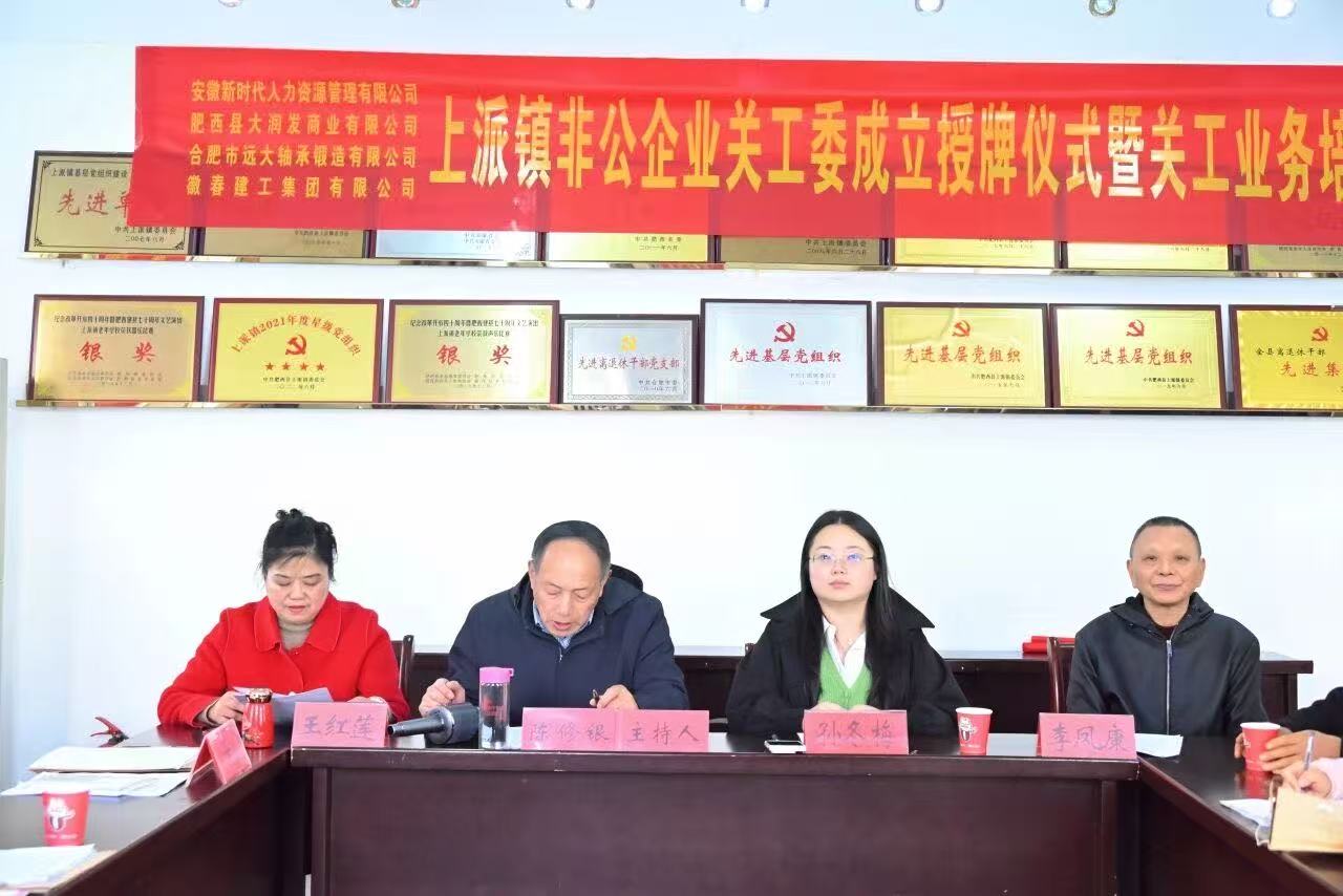 11 月 21 日下午,肥西县上派镇关心下一代工作委员会为徽春建工集团有限公司举行授牌仪式。这是上派镇深入贯彻落实中共中央办公厅、国务院办公厅 46 号文件精神的具体实践,旨在推动企事业单位关工委组织建设全覆盖,通过 “活动联办、资源联用、协调发展” 模式,凝聚各方力量共同做好关心下一代工作。